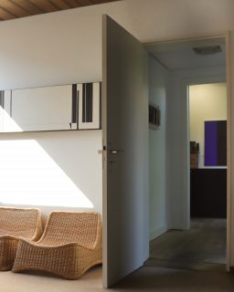 Peire and Verbruggen travelled extensively during the early days of their partnership and the artist worked in studios all over the world including Mexico, New York and the Belgian Congo (now Republic of the Congo). Their rootless existence settled when they moved to Paris in 1959. From then they would winter in Paris and summer in their Knokke home. Having started as a figurative painter Peire evolved to ‘abstract verticalism’. Over time his figures were reduced to stark lines and spaces, something that is perfectly embodied in the lines and light of this space.