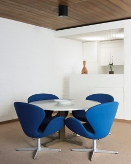 The couple’s interior embraces mid 20th century form and innovation, as did Peire’s work; the artist eventually did away with canvases, instead choosing to paint on Formica, an engineered material innovation of that period. Bold hits of saturated blue can be picked out in upholstery and Piere’s paintings that are hung throughout, becoming somewhat of a signature in the space. Recognisable, and now highly desirable furniture is dotted throughout. After some light furniture stalking on the internet I am happy to share that those boxy Wicker Easy Chairs by Danish designer Nanna Ditzel are produced today by Sika Design; so start saving.