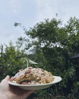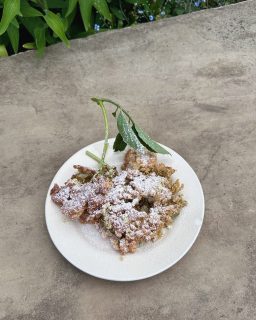 A great example is a traditional rural South German and Austrian dessert called Holunderküchle (also known as Hollerküchel, Holunderpfannkuchen, Holderle, or Hollerschöberl): a sweet elderflower tempura, served simply and emphasising the natural shape and distinct flavour of the swiftly blossoming flowerheads. The elderflower season is short and oh-so-sweet. The flowering of these trees brings not just scent and flavour — ready to be infused into a multitude of desserts and preserves — but also a softly screaming anticipation of the brightest season ahead. This treat is meant to be enjoyed immediately, (guilt-free) and indulgently.