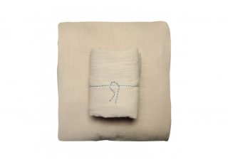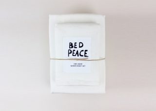 Shades of plaster, putty and peach in textural linen add colour but don’t read overtly fem. Both In Bed’s Peach, and Merci‘s Pink Beige hold just a whisper of colour. Lighter weight gauze wrinkles just like linen but is softer to the touch and is suited to the summer months; we like Lab Boutique’s version that comes in the perfect shade of nude.