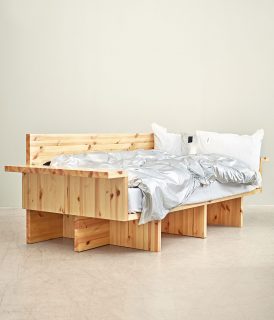 To avoid the demands of high thread count cottons like Percale, which requires pressing, opt for washed linen and cottons. Australian brand Deiji’s French flax linen is stone-washed for softness, H&M Home stock a good basic washed white linen set, while Jungmaven’s hemp is a slightly heavier weight that promises to relax with wear, but giving these sheets an occasional tumble speeds up the process. Then layer on texture with a lightweight waffle throw, like the Free Bedspread from Society Limonta.