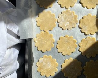 When all your cookies are cut out, bake them for about 10 minutes. After 5 minutes slide the tray out, glaze the top with egg wash and sprinkle both some Maldon salt and brown or muscovado sugar on top to get a salty caramel finish – because don’t we want both all the time? Bake for the remaining time.