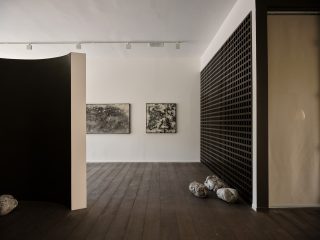 His affinity for geology comes across in pebble-like forms, while his love of ruins is expressed in architectonic sculptures built from tumbling blocks. Both these bodies of work are composed of aggregated clays, mixtures of what were already mixtures, building on his years of experimental recycling. Passages in porcelain and swirls of blue cobalt lend brightness, the palette of refined Chinese ceramics transmuted into something raw and archaic, as if he were reaching back through the canon to find its source.